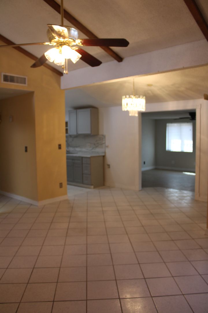 Single level home offering four bedrooms and 1.75 bathrooms. The living room features cathedral ceilings, and the interior has no carpet. The home includes a dining area off the kitchen. Refrigerated A/C for climate control and a double car garage with the washer and dryer connections in the garage. No pets are allowed. Home is conveniently located, this property provides a low-maintenance layout and comfortable indoor features.
