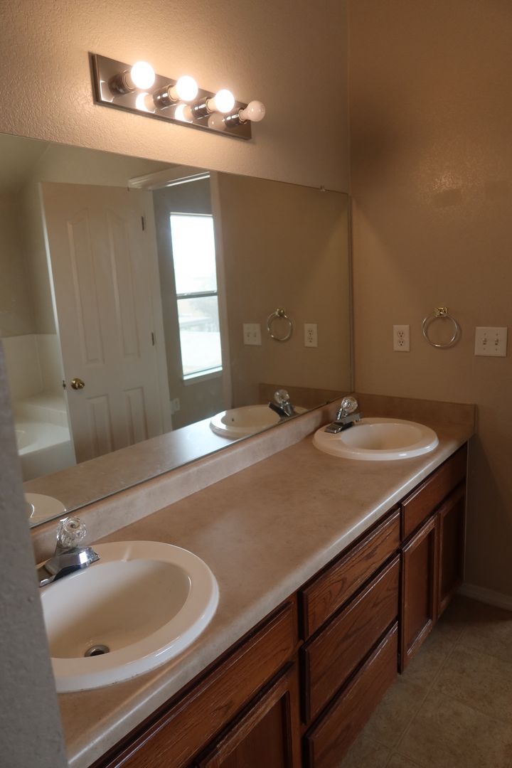 Take a look at this lovely 2 story home with 4 bedrooms, 2.5 baths, a double car garage, laundry room and 2 living areas. Downstairs you have formal living/dining room combo, kitchen with island and family room with fireplace. Upstairs you have all bedrooms including master bedroom with walk in closet and master bath with double sink and shower with separate tub. Features include refrigerated air, nicely landscaped front and back yard. Located close to schools, shopping and major intersections.
